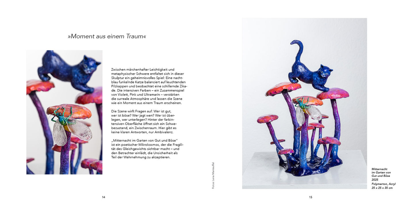 Bright colors, relief-like structures, and figurative motifs open up spaces for alternative perception, wonder, and empathy. The catalog documents this artistic cosmos in high-quality images and offers insights into the themes, materials, and backgrounds of her work.